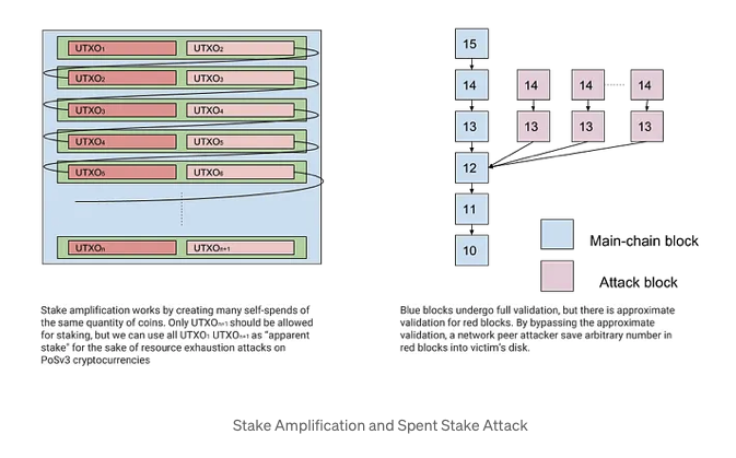 It’s well understood that Proof-of-Work (PoW) plays an essential role in Bitcoin consensus. But Proof-of-Work also plays a second, somewhat less appreciated role, which is guarding access to a node’s limited resources, such as disk, bandwidth, memory, and CPU In a permissionless cryptocurrency network, peers must not be trusted. So, to prevent against resource exhaustion attacks, Bitcoin nodes first check the PoW for any received blocks before committing more resources, such as storing the block in RAM or on disk. However, it turns out that checking a Proof-of-Stake is a lot more complicated and context-sensitive than validating a Proof-of-Work..As a result, many chain-based PoS implementations have skimped on the appropriate validation.